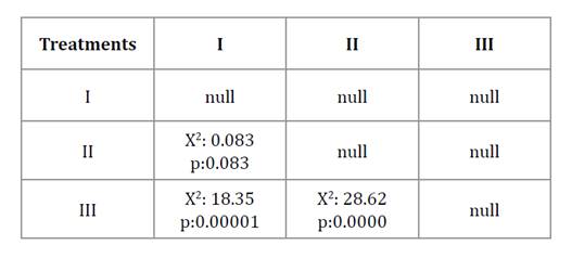 Table 2. X2 test for the comparison of the Kaplan-Meier curves of each inoculation procedure.