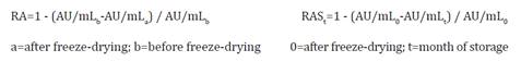 Cell viability during storage was expressed as Survival Factor during t month of Storage (SFSt), and calculated as follows: