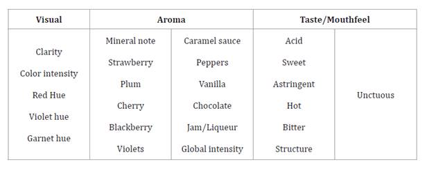 color intensity, astringency, and structure. Certain aromas, such as cherry and