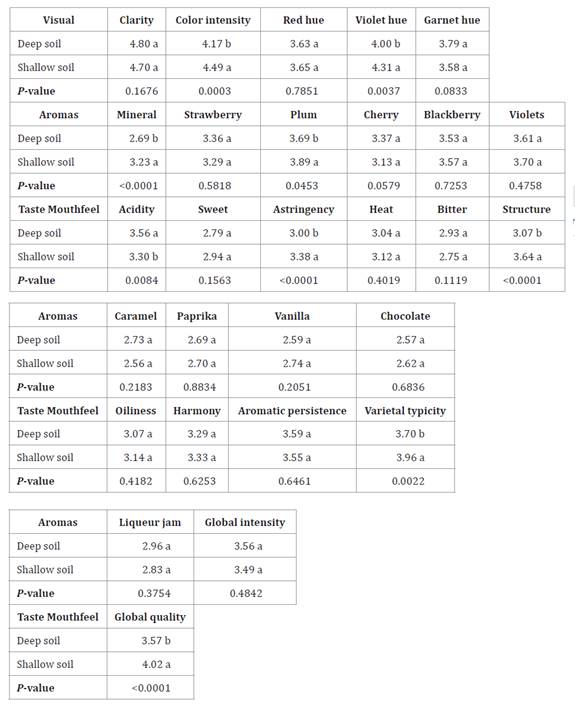 diferencias significativas en las propiedades organolépticas de los vinos, con
