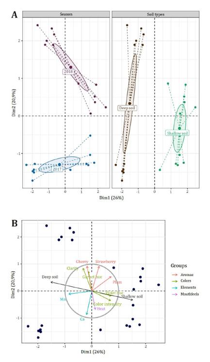 el tipo de suelo y la temporada de cultivo. Los vinos de DS presentaron mayor