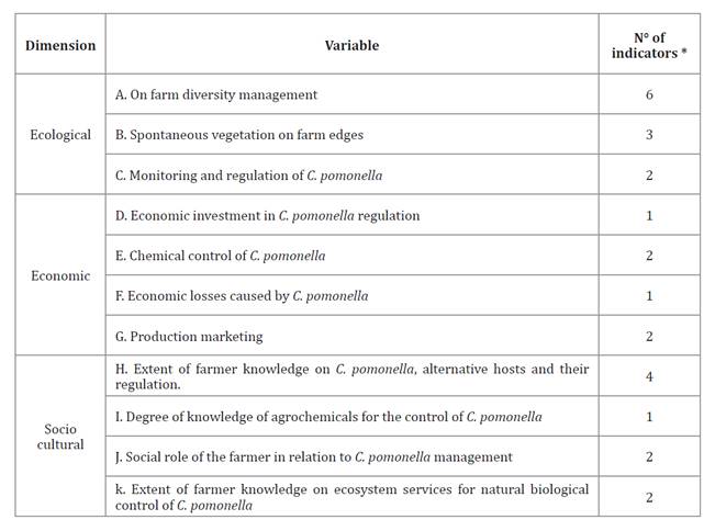 Tabla 1. Composición del análisis de sustentabilidad del manejo de Cydia pomonella en fincas de nogales.