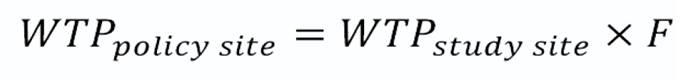 Where WPTpolicy site represents the value of a marginal change in water security -achieved through a policy that conserves agricultural water for reallocation to other uses- adjusted to the policy site’s conditions. WPTstudy site refers to the value of a water security change estimated in one or more previous studies, which requires adjustment. F, the adjustment factor, accounts for these differences.