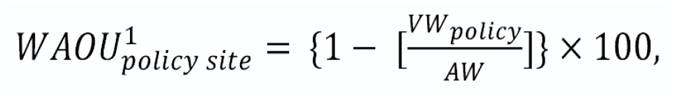 Where WAOU1policy site represents the average annual percentage of water availability for other uses that could be achieved at the policy site, if the water distribution system were aligned with the water requirements of grapevine crops; VWpolicy corresponds to the average annual volume of water allocated to viticulture in the oasis (m3 year-1); and AW (agricultural water) is the average annual volume of water allocated to agricultural use (m3 year-1).