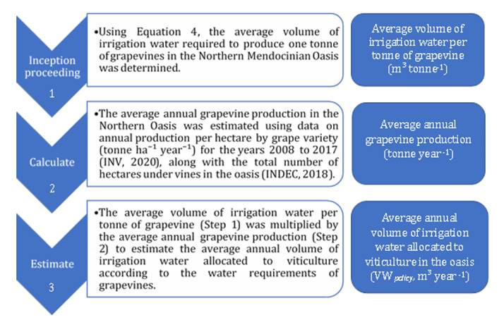 Figure 3. Process for estimating the average annual volume of irrigation water allocated to viticulture in the Mendocinian Northern Oasis.