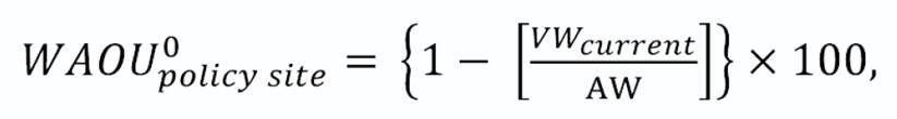 Where WAOU0policy site represents the average annual percentage of current water availability for other uses in the policy site; VWcurrent (Equation 8) is the current average annual volume of water allocated to viticulture (m3 year-1); and AW is the average annual volume of water allocated to agricultural use (m3 year-1) in the oasis.