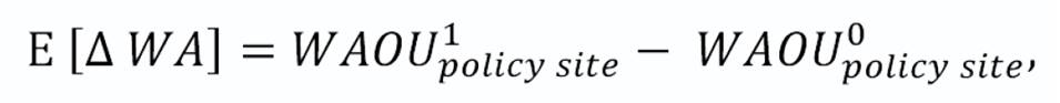 Where E [ ∆ W A] denotes the expected change in average annual water availability resulting from the water security improvement policy; WAOU1policy site is the average annual percentage of water availability for other uses that could be achieved in the policy site if the water distribution system were aligned with the water requirements of grapevine crops; and WAOU0policy sity is the average annual percentage of current water availability for other uses in the policy site.