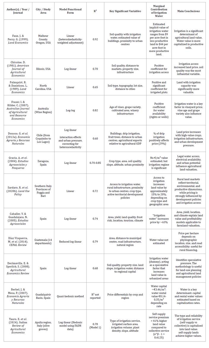 hedonic pricing models for the valuation of irrigation water. Global NEST