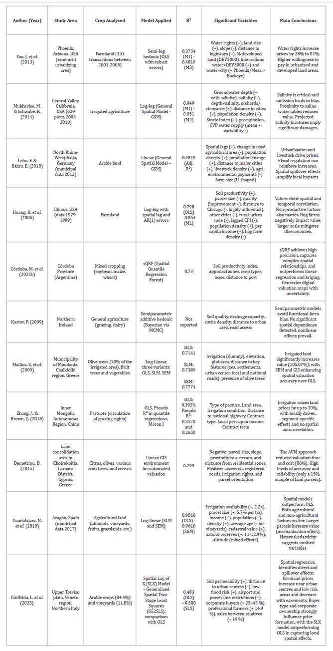 agrícolas-Precios hedónicos y avances geoestadísticos: Una revisión del estado
