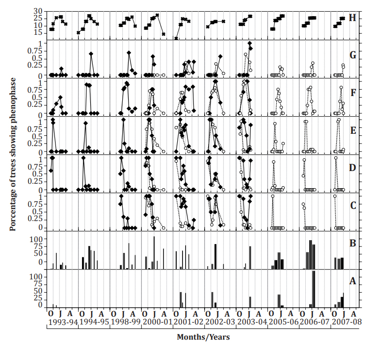 patrones fenológicos, producción de frutos, intensidad fenológica, patrón de floración, sincronización, freatófito facultativoResumen