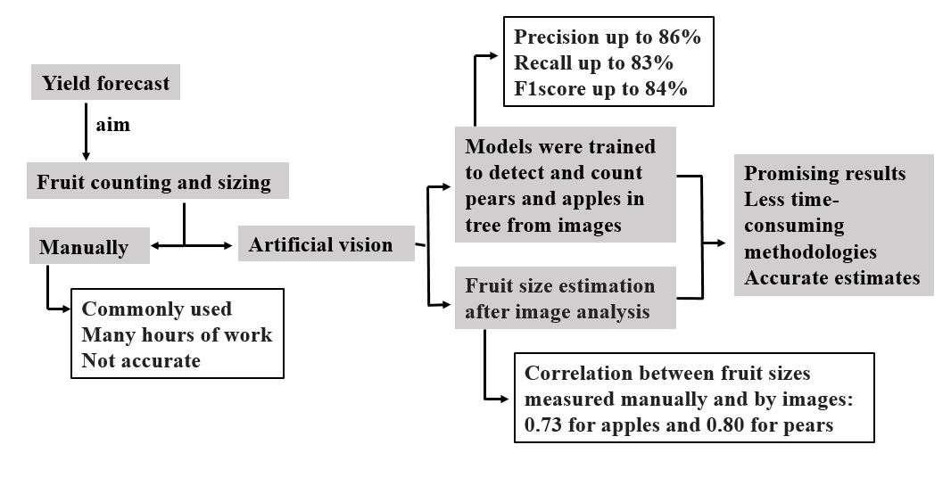 - The number of fruits in apple and pear trees, could be estimated from images with promising results.