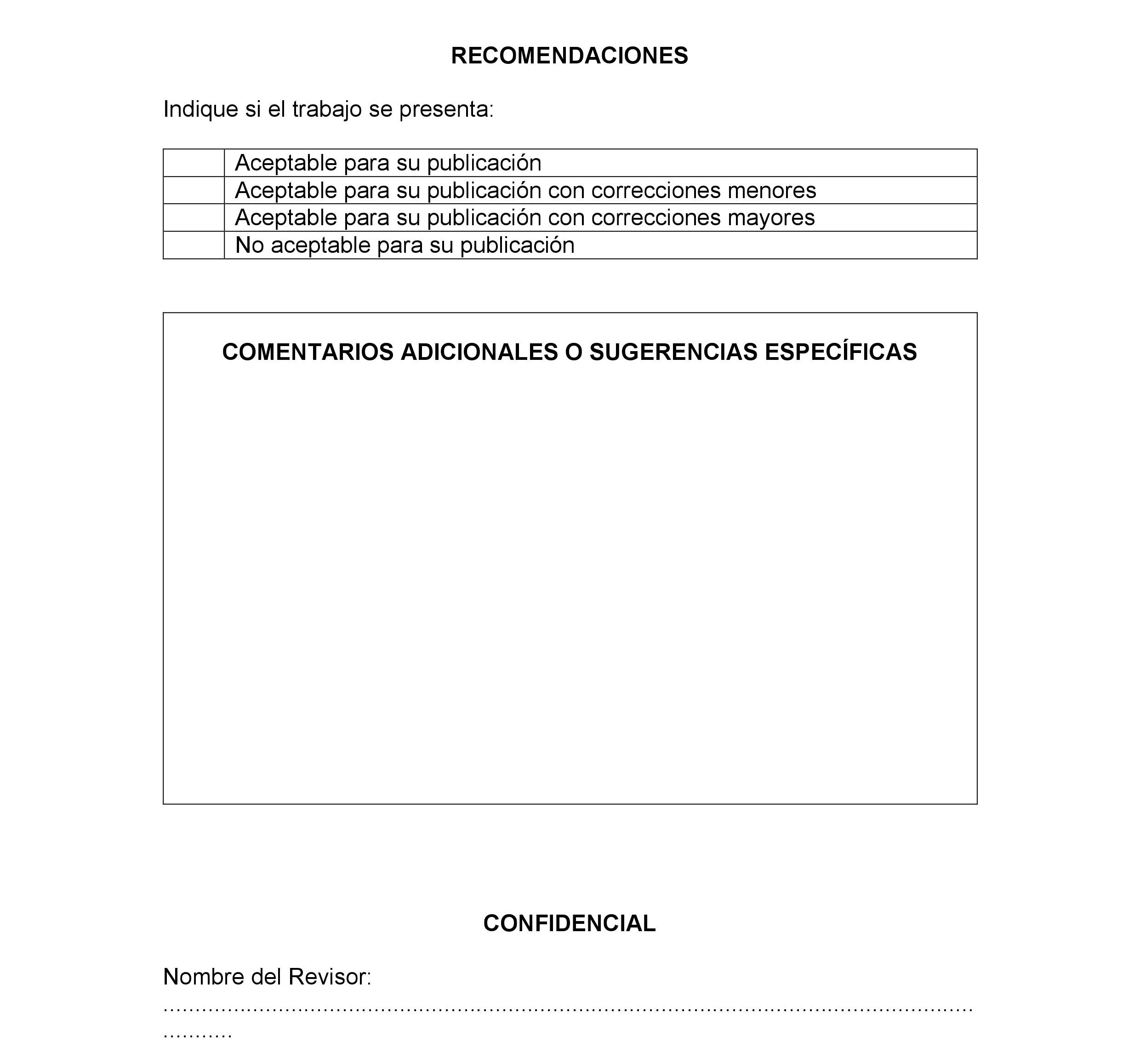Se envía el artículo sin nombre de los autores a los evaluadores y una vez obtenido el resultado se remite a los autores sin el nombre de los evaluadores. En caso de que el trabajo no sea aceptado por uno de los evaluadores se envía a un tercero con la finalidad de su aprobación o rechazo definitivo.