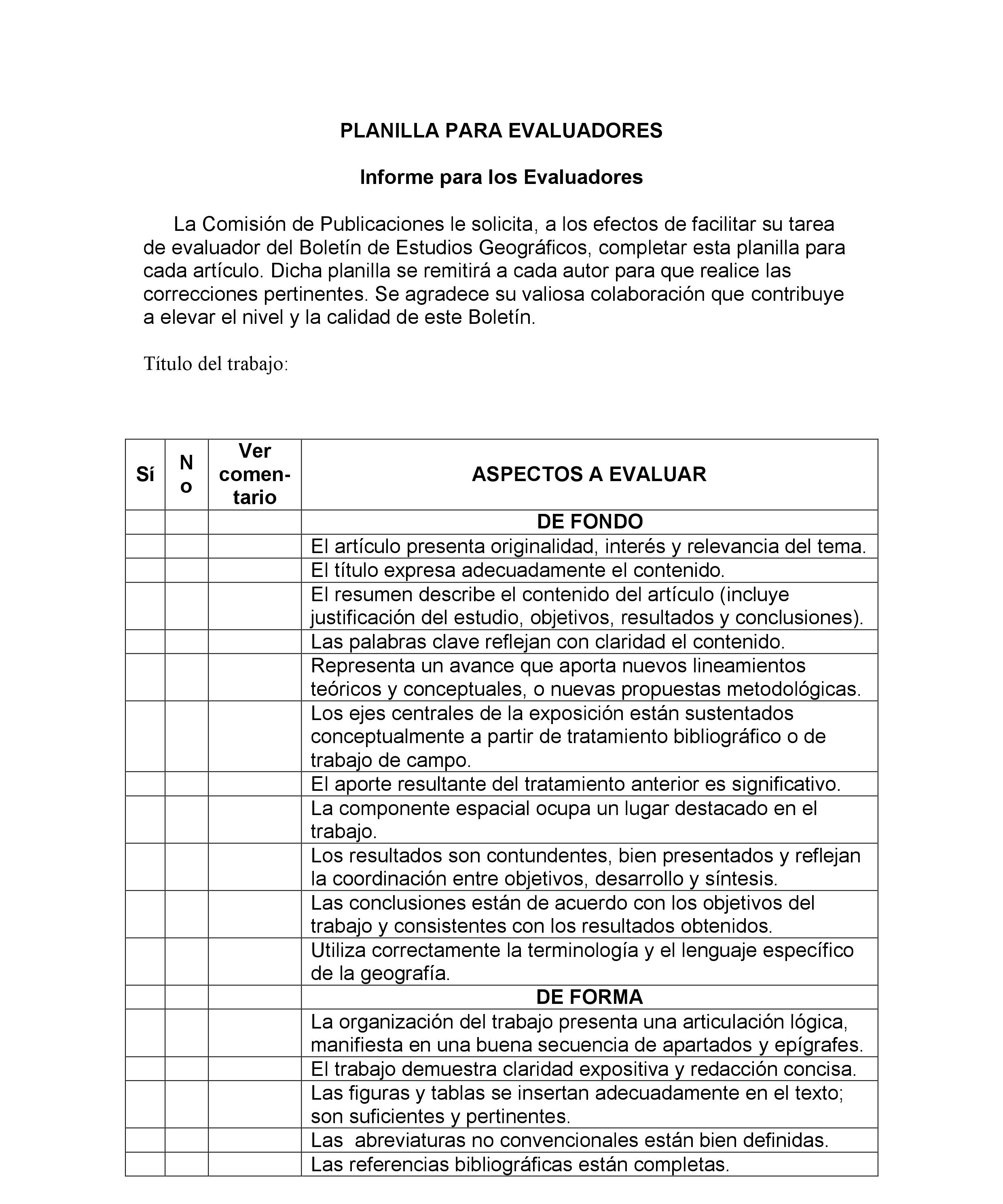 Los evaluadores cuentan con la siguiente grilla diseñada por el Comité de Publicaciones: