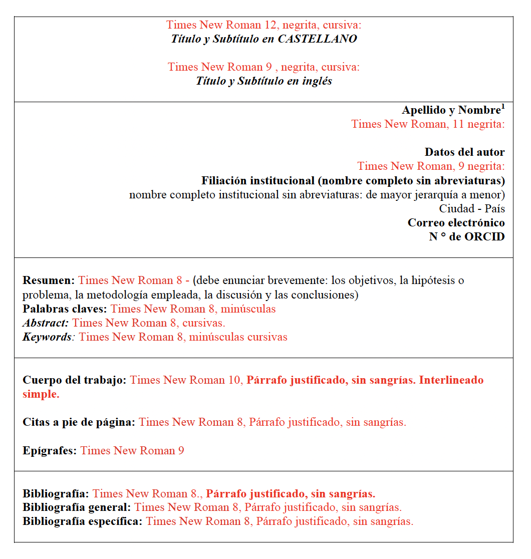The texts: must be original and unpublished. simple interlined for the notes at the foot of the page (texts with notes at the end of the page will not be accepted). If you organize the epigraphs separately, they will be written in numbers, in Times New Roman 9, centered and cursive, and the pages should also be numbered correspondingly.