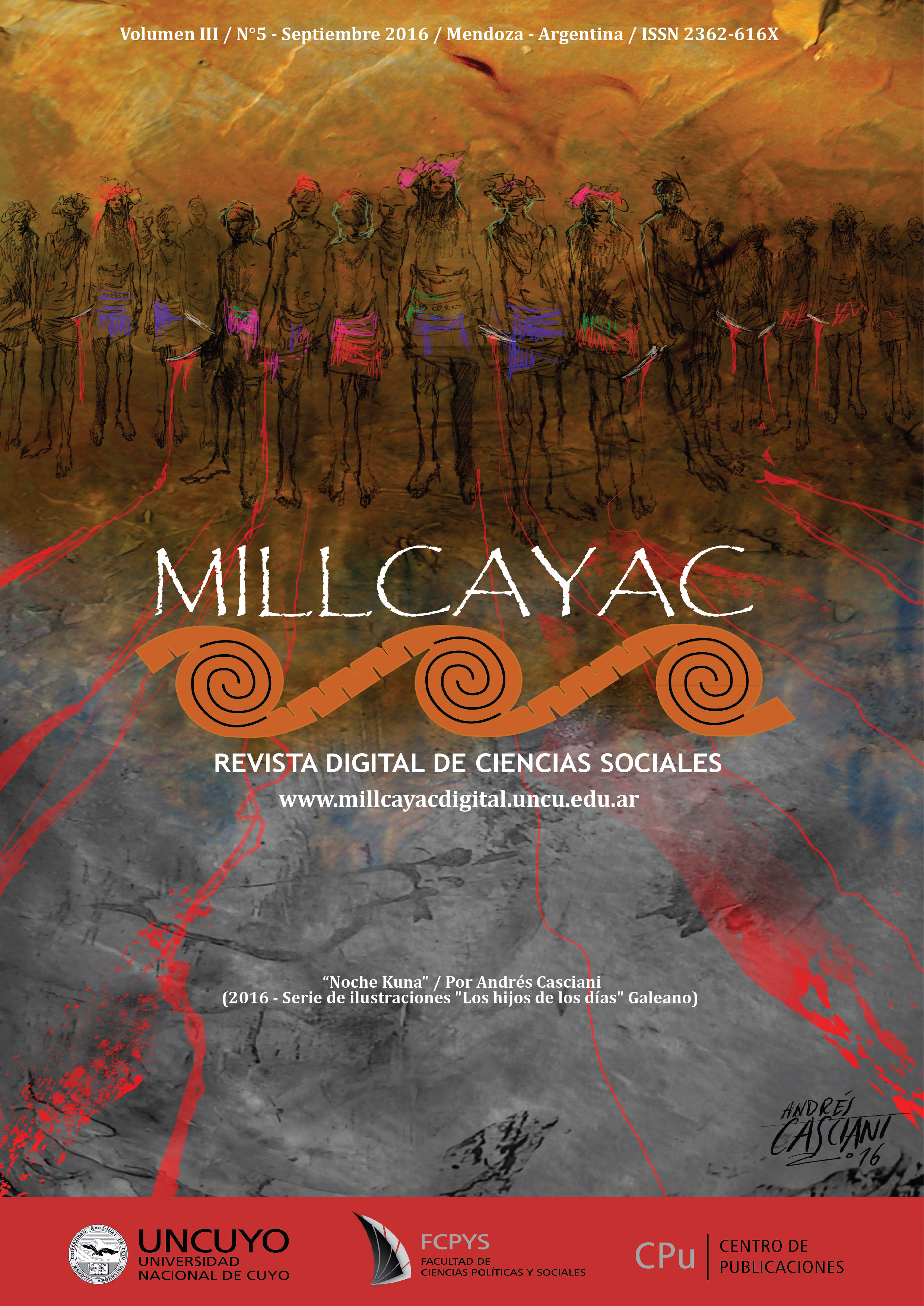 Tapa Millcayac Digital - Volumen III, Número 5, Año 2016, realizada en el Centro de Publicaciones de la Facultad de Ciencias Políticas y Sociales de la Universidad Nacional de Cuyo
