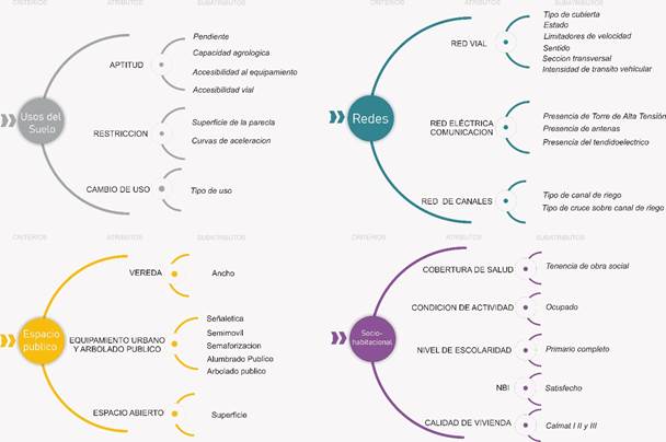 Definidos los criterios y atributos de análisis, se incorporan los sub-atributos para cada atributo, los cuales serán relevados en el terreno y se enumeran en la Figura 2.