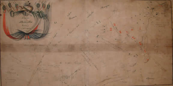 22 CACM, PL_0209. José Alberto Bacler d’Albe, Plano de la Batalla de los llanos de Maypú. Santiago, 1818.