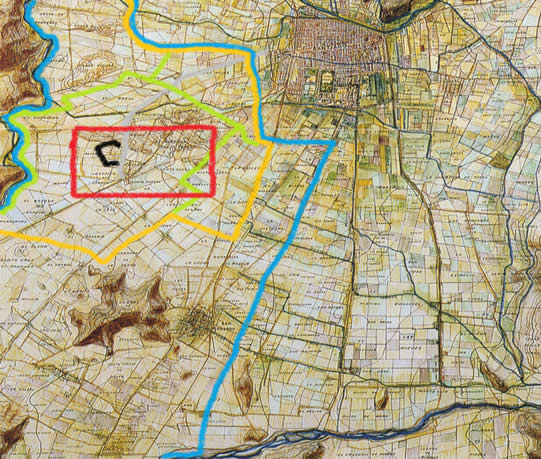 Figura 3. Fuente: Maipú y sus territorios en el Chile colonial y republicano. Plano intervenido y modificado por el autor. Plano original de Rengifo (1901).