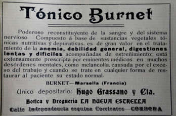 Esta etapa embrionaria en la constitución de nuestro mercado especializado se halló definida por publicidades de medicamentos y de establecimientos orientados a su elaboración y comercialización que, en los primeros años, sólo introdujeron ofertas de preparados medicinales a partir de fórmulas preestablecidas de origen europeo. Entendemos que esta tendencia se encontraría directamente relacionada al desarrollo incipiente de la industria nacional en los albores del siglo XX. Dentro de esta oferta inicial hallamos tónicos, hecho que muestra la falta de especialización de la química farmacéutica y ciencia bioquímica para dar respuesta a la prevalencia de enfermos y muertos de patologías infecciosas y parasitarias propias de una etapa epidemiológica pre-transicional de fines del siglo XIX y principios del XX. No obstante, a medida que ingresamos en la década del 1920, el mercado nacional comenzó a ofertar productos otro tipo como las vacunas y los sueros, en un contexto en el que aún tenía una gran preponderancia el modelo de bienes primarios exportables y las principales riquezas del país se obtenían todavía del suelo.
