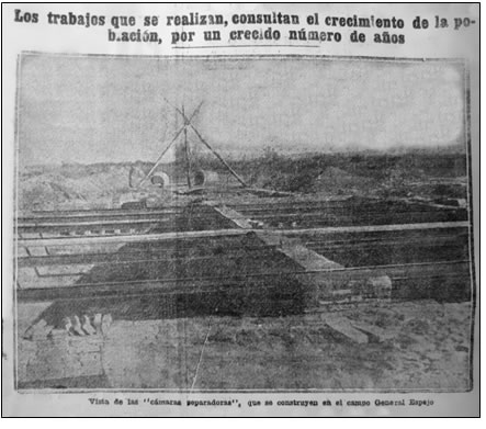 En 1924, Los Andes informaba sobre el estado de las obras a partir de una entrevista con Ludovico Ivanissevich52, director local de las OSN. A la inquietud de algunos vecinos, publicada en Los Andes, que señalaba que las cañerías no eran suficientes para la cantidad de población, Ivanissevich contestó que el proyecto aprobado por el gobierno de la Nación y que la empresa constructora ejecutaba, era para una población mucho más numerosa que la que poseía la ciudad de Mendoza: